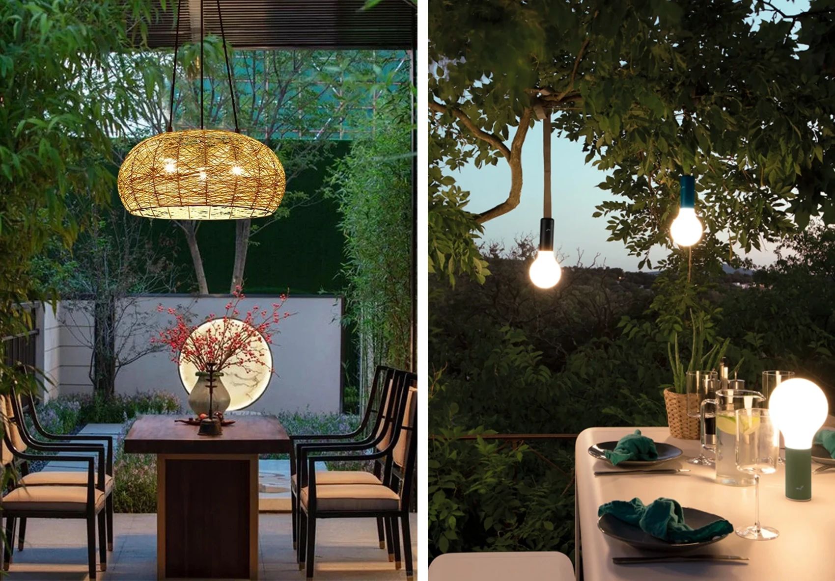 一般安装在屋檐下或亭子廊架等下方,用于用餐区或是休闲区等需要较强光源的地方。