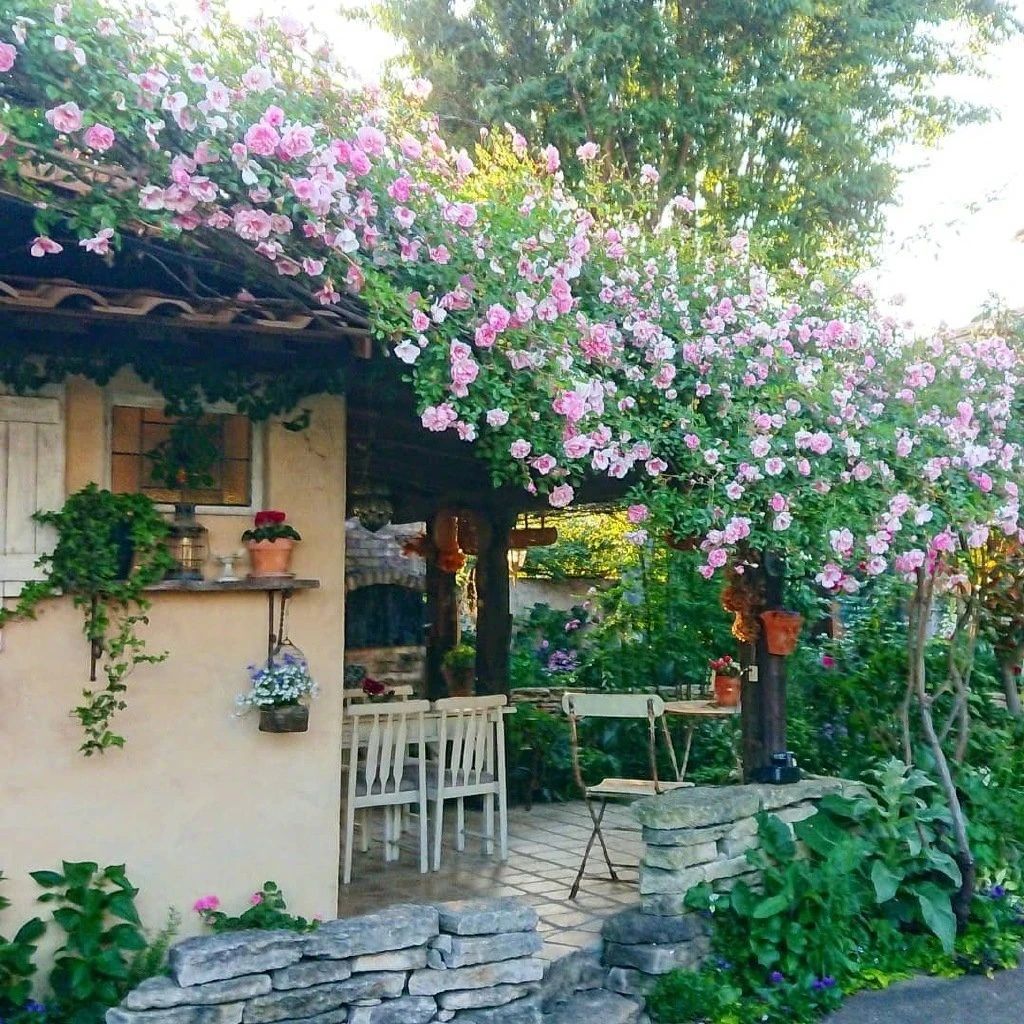 印象中的小院子可以不大,但要有一处圆形的门,上面爬满了三角梅、爬墙虎···下面摆上一面桌子,就能招待亲友啦!院子里可以什么都没有,最好有一棵大树,为小小的家遮风挡雨,全家人都能在树下谈天说笑。