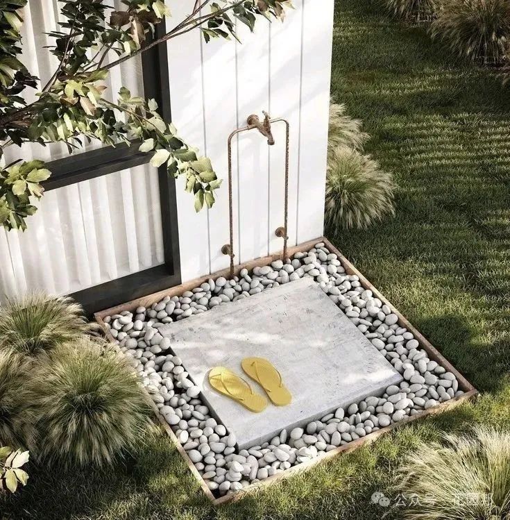 放松氛围:注重遮阳(藤架、大树)、静谧性(水景、风铃)和私密性(绿篱、围栏)。