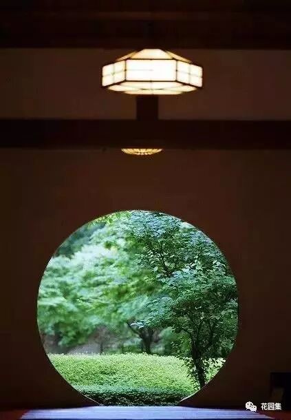 月亮门传到了日本,简化了很多装饰性的元素,形成极简的禅风韵味,最为重要的圆形得到了强化。其中以镰仓名寺——明月院的月亮门最为叹绝。可谓:一窗一世界,四季不同景。