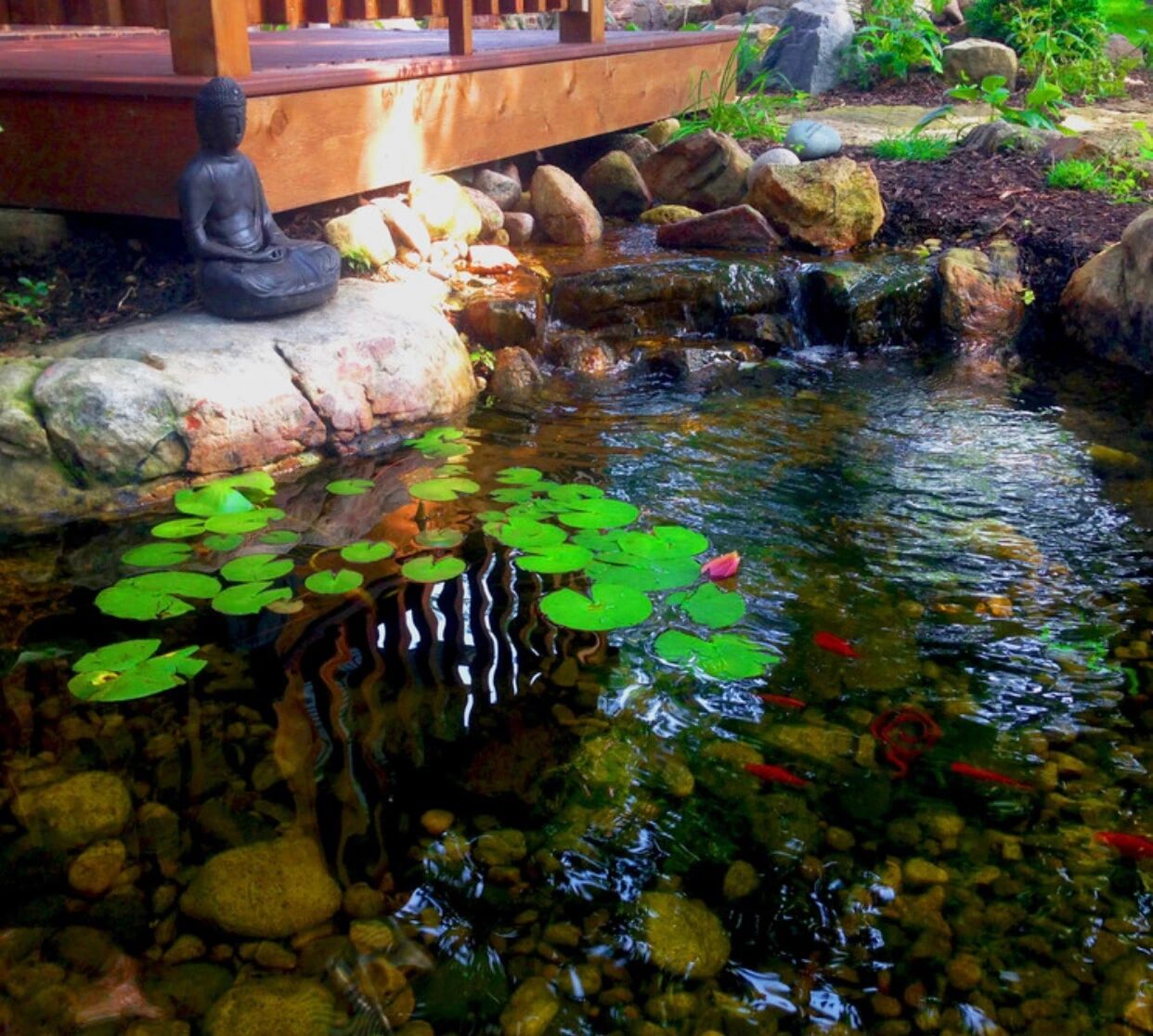 生态鱼池设计的建造材料有两种,第一种是防渗透膜,第二种是砖头围边,钢筋混凝土加防水材料,大多数人会选择第二种。实际上,这两种都是不错的选择,看预算做选择。青岛别墅庭院设计