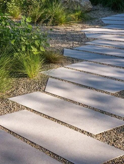而不规则的汀步也颇有设计感,让庭院的小道不再单调的同时也能保证草坪植被不被破坏,予人一种别样的自然体验。