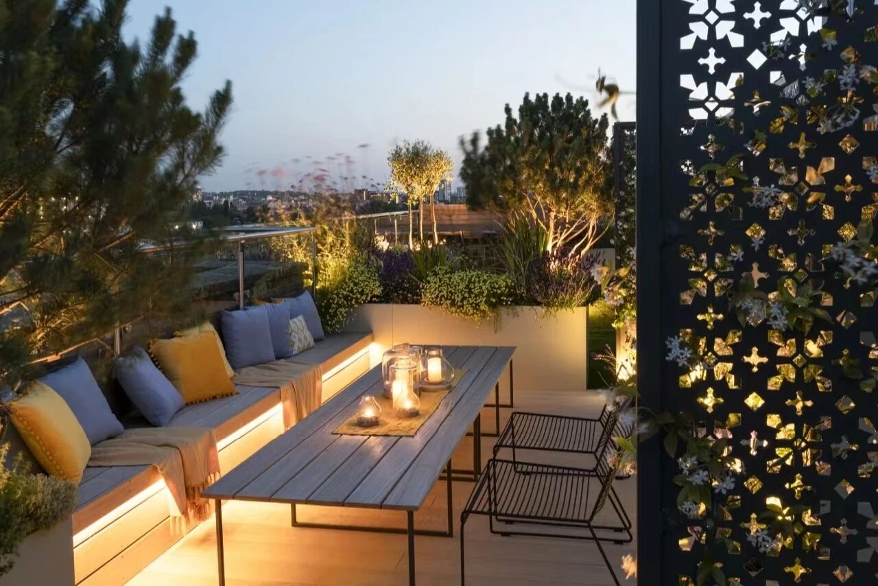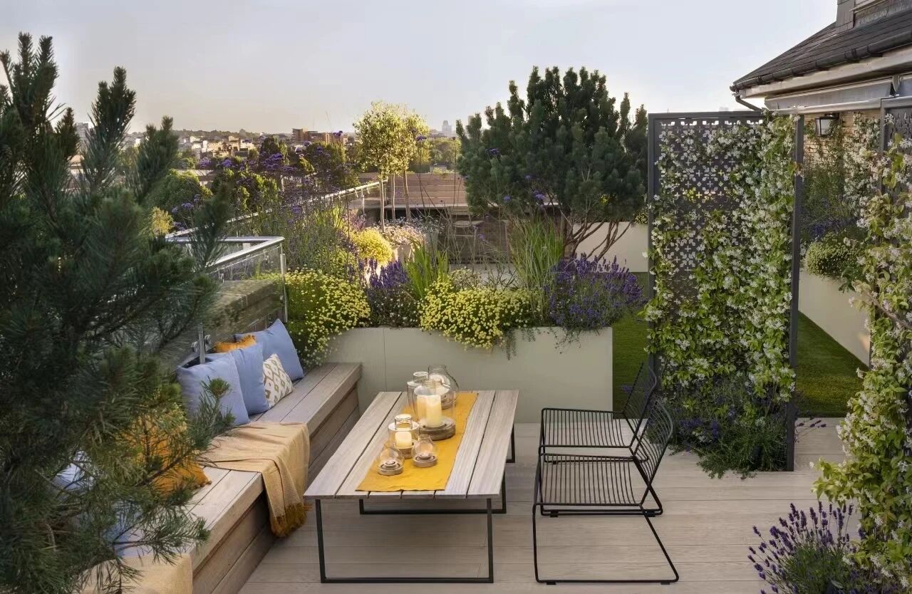 如何打造一个实用型的露台花园,首先需要做的整个空间的布局规划设计,从实用和美观的角度出发,考虑到露台是一个风吹日晒的环境。