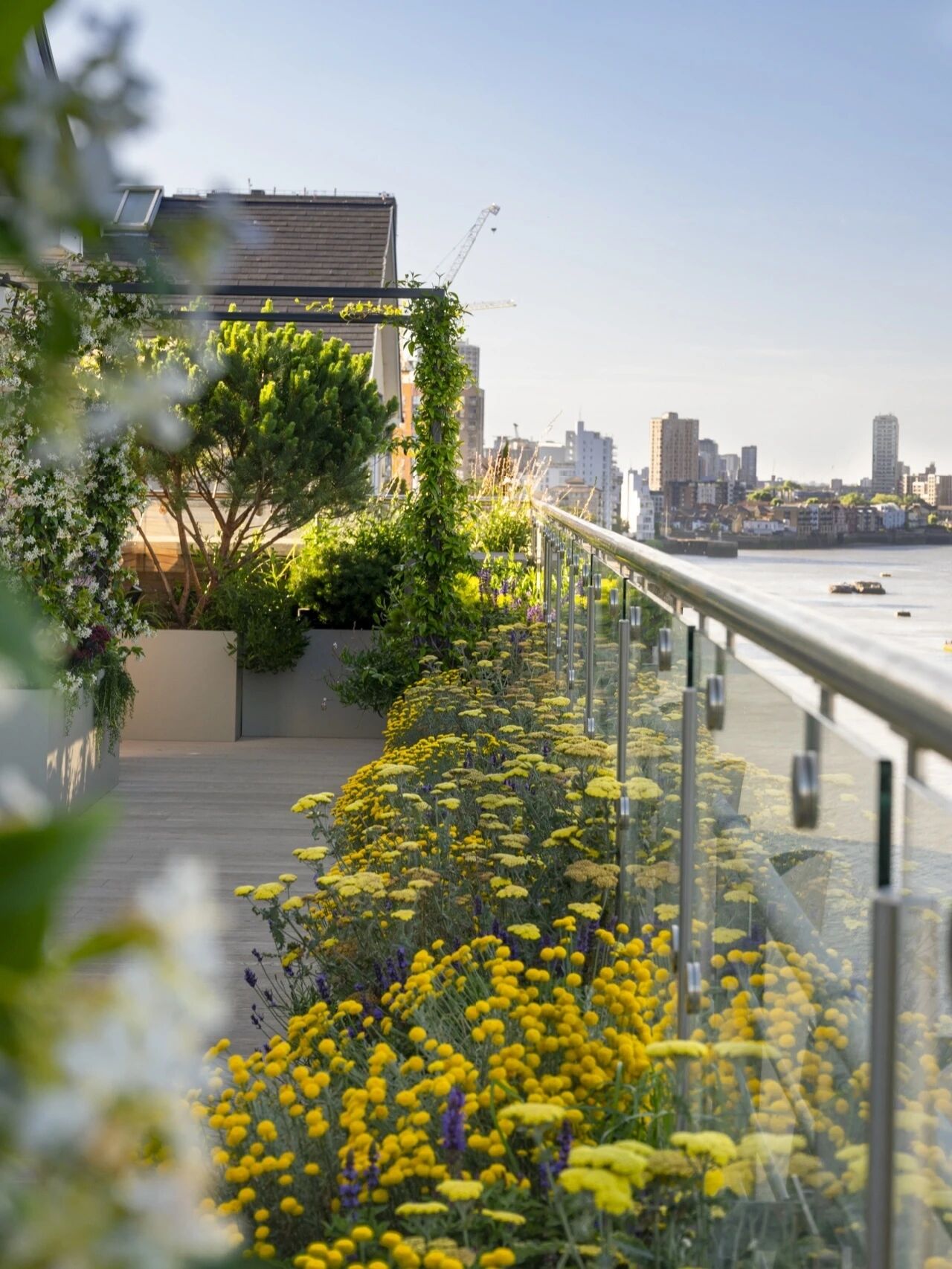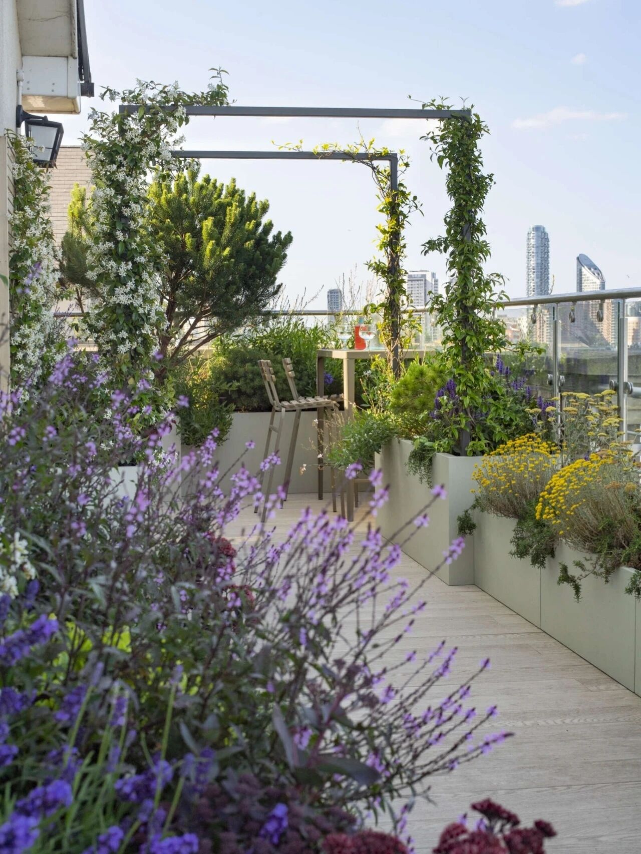 土壤的配比上建议搭配进河沙一类透气的介质,以确保土壤的透水透气性良好,空间比较大的露台还可以安装自动浇灌系统,给植物提供足够的水分需求。